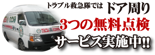 カギだけに限らずガラスや水回りのトラブルで当社の サービスマンが「作業をした場合」に下記3つの サービスを無料で実施させていただきます!